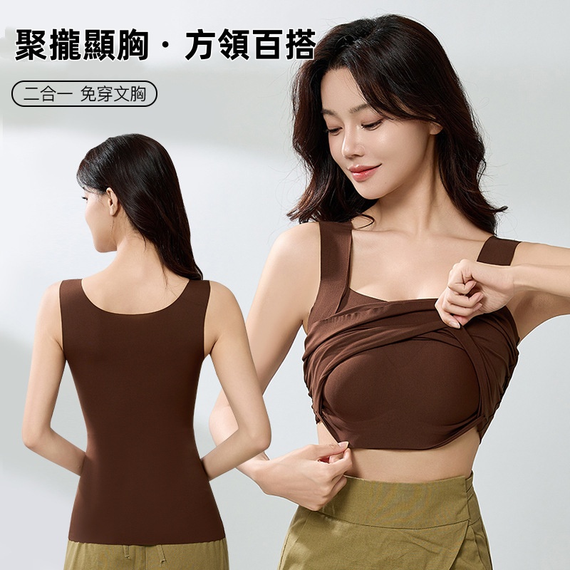 【自帶胸墊】秋冬無痕雲朵裸感肌底衣保暖背心女固定杯美膚衣打底秋衣保暖背心