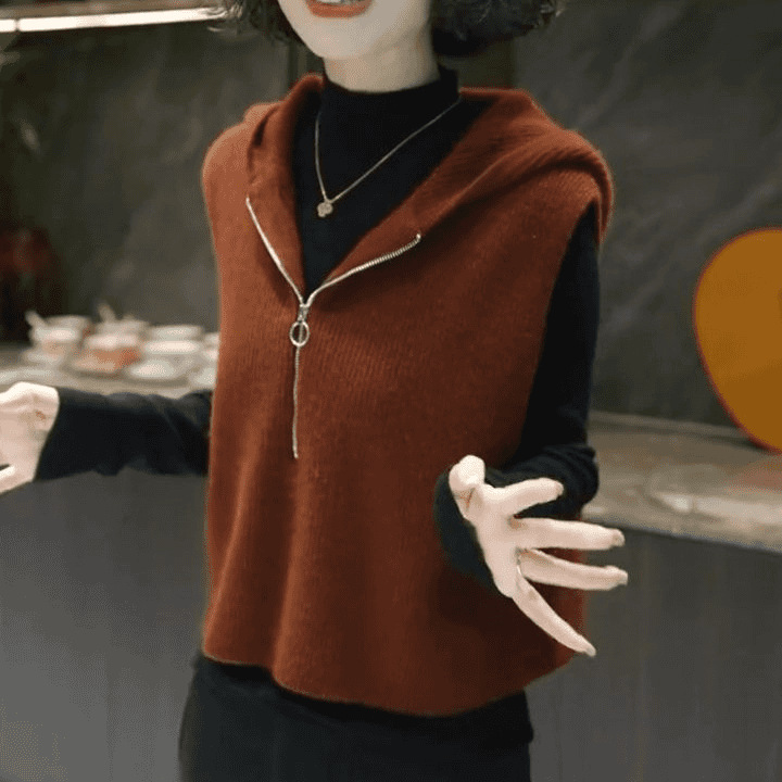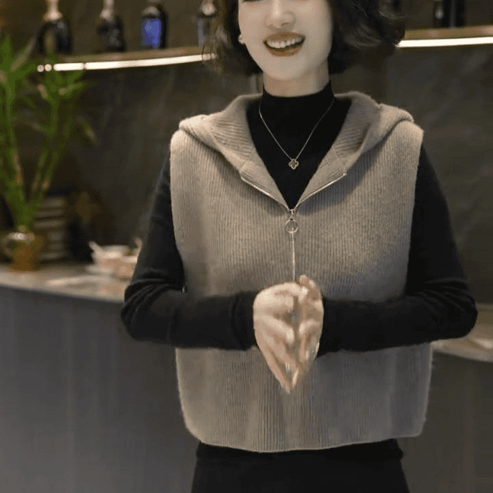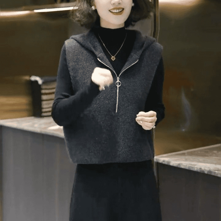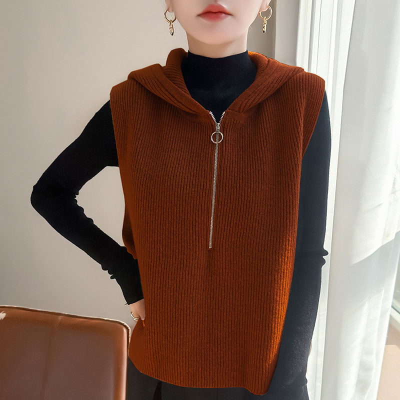 連帽高端馬甲顯瘦舒適慵懶風半拉鏈針織衫 連帽針織馬甲 半拉鍊設計超吸睛 連帽造型休閒又優雅 經典色系百搭不挑人 衣身結構超顯比例