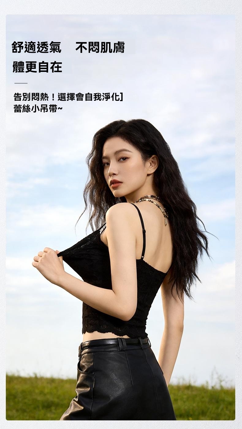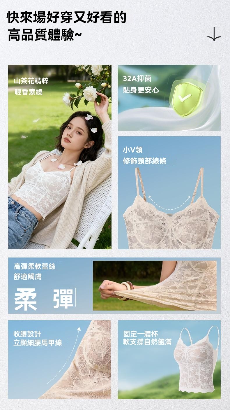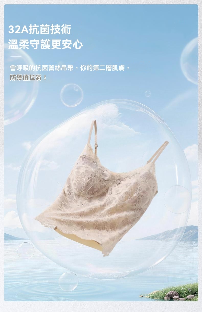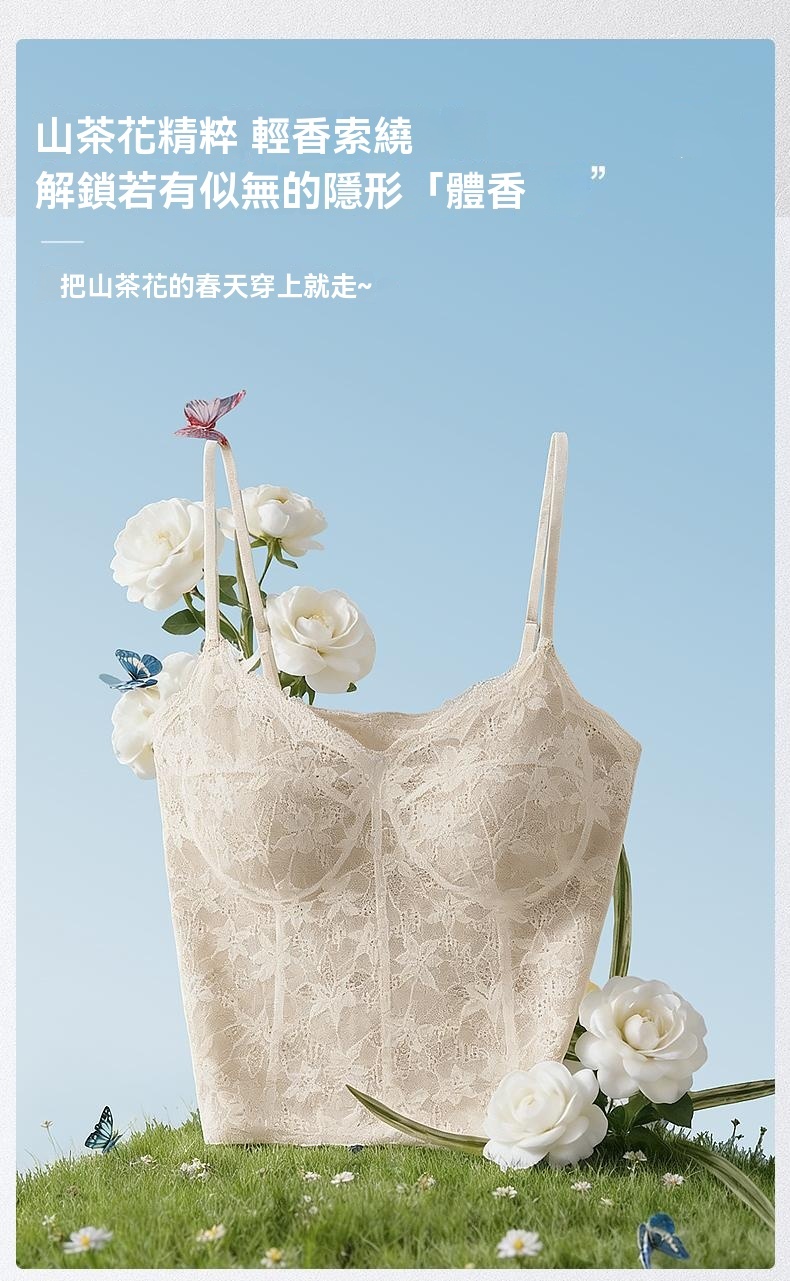 32A抗菌山茶花植萃甜辣蕾絲美背吊帶帶杯墊打底性感內搭