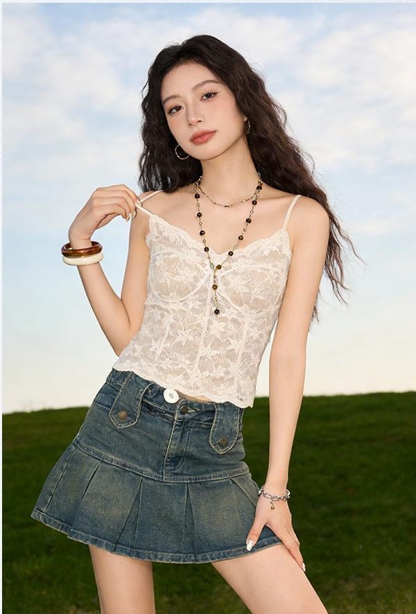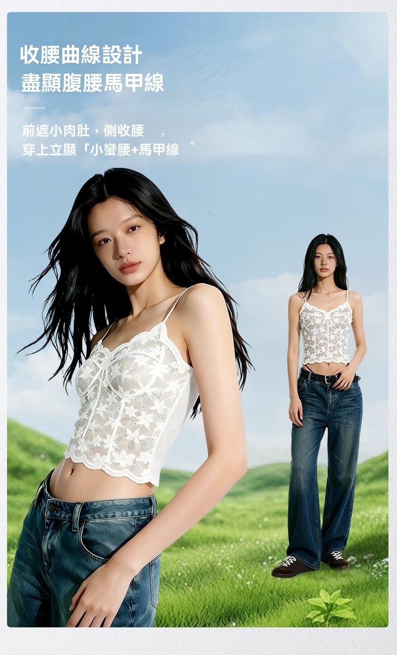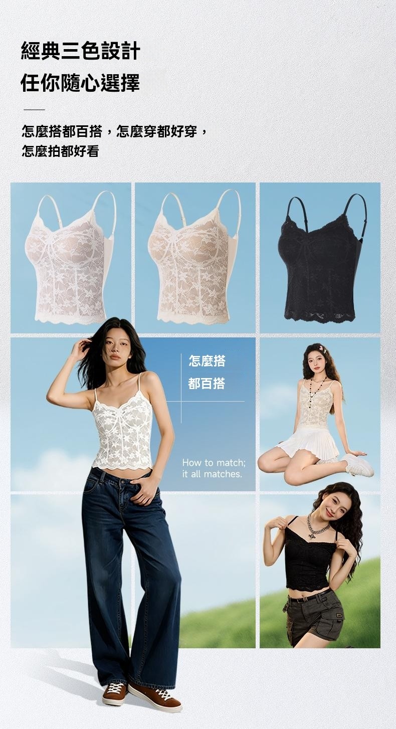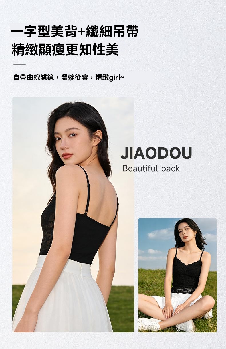 32A抗菌山茶花植萃甜辣蕾絲美背吊帶帶杯墊打底性感內搭